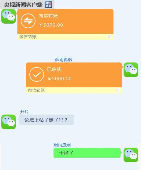 小张:谁知道他要的是两万块钱,不给钱,坚决不删帖。我爸就讲纪委已经查过了,没有这个事情,他不怕,随你举报。但是我这个呢,好多朋友同学打电话给我,就讲说网上这个在流传你父亲的帖子。
