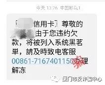 此类骗术中,骗子打着可以“办理大额信用卡”的幌子,通过向市民群众群发短信,引诱受害者上当。